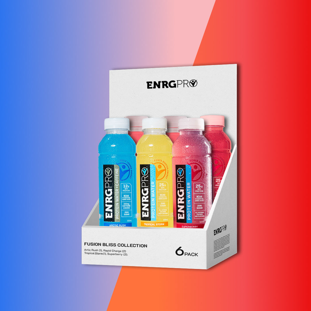 Elevate your fitness routine with ENRG Pro's Protein Water, featuring two dynamic flavours: Arctic Rush and Rapid Charge. Packed with 12g  of Whey Protein Isolate (WPI) per serving.